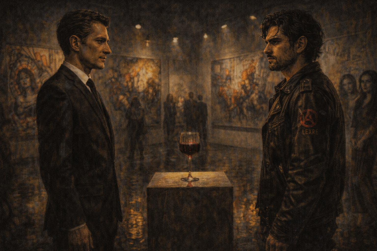 Lex busca a Lunaria en la galeria y le cuenta todo. Lo que sale de su boca es una mezcla de analisis politico y panico contenido: