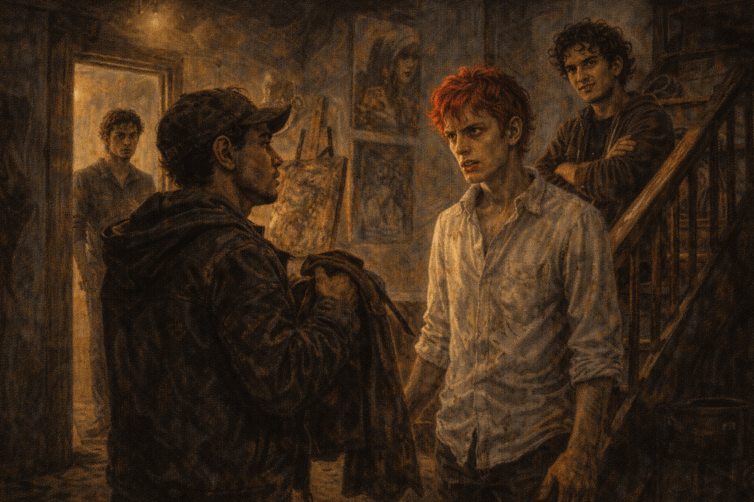 Luis llego del hospital a las cinco de la tarde. Entro al salon con la cara de quien ha estado conteniendo algo durante horas y ya no puede mas. Los demas estaban sentados — Nicolas con los brazos cruzados y la postura cerrada de quien espera pelea, Isaac con esa cara de cordero desorientado que llevaba pegada desde que entro al loft.
