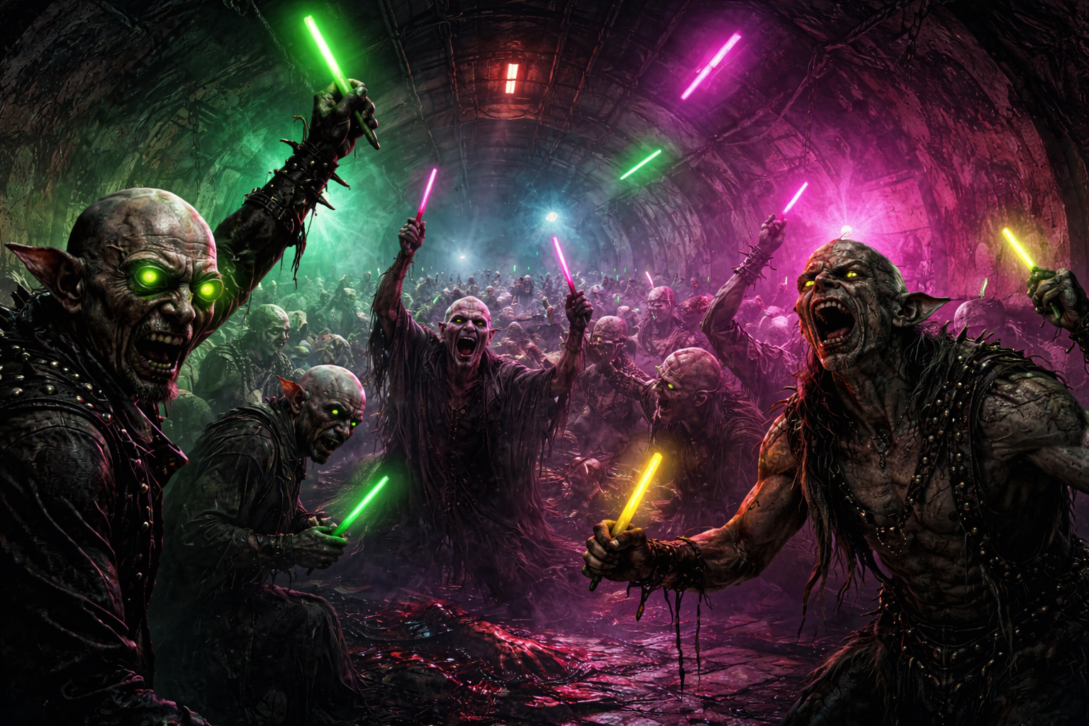 Rave Nosferatu en el metro abandonado — neon, BDSM y monstruos