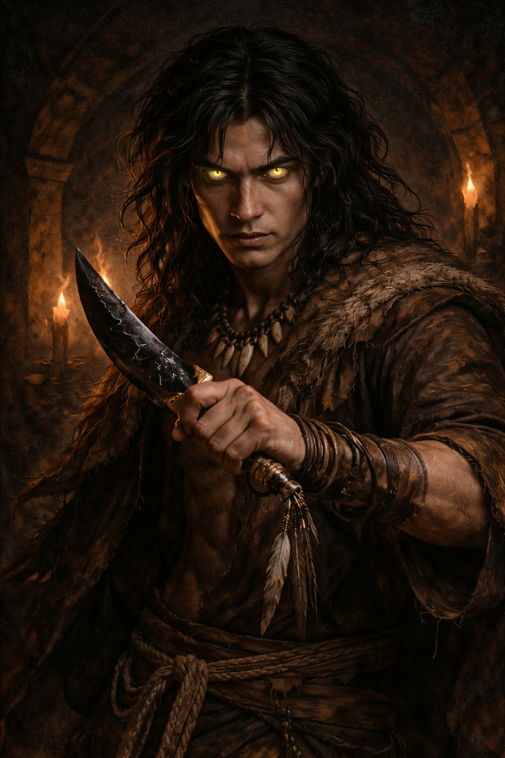 "Soy Futapangue, hijo de Michimalonco, lider de los Pangueche y lider de los Miren del Valle." "Mataste... tu linaje mato a mi padre." "Maldigo tu linaje, engendro del caos. Escoria. Distorsion oscura de la realidad." "Juro que destruire a cada uno de ustedes hasta que esta tierra este limpia."